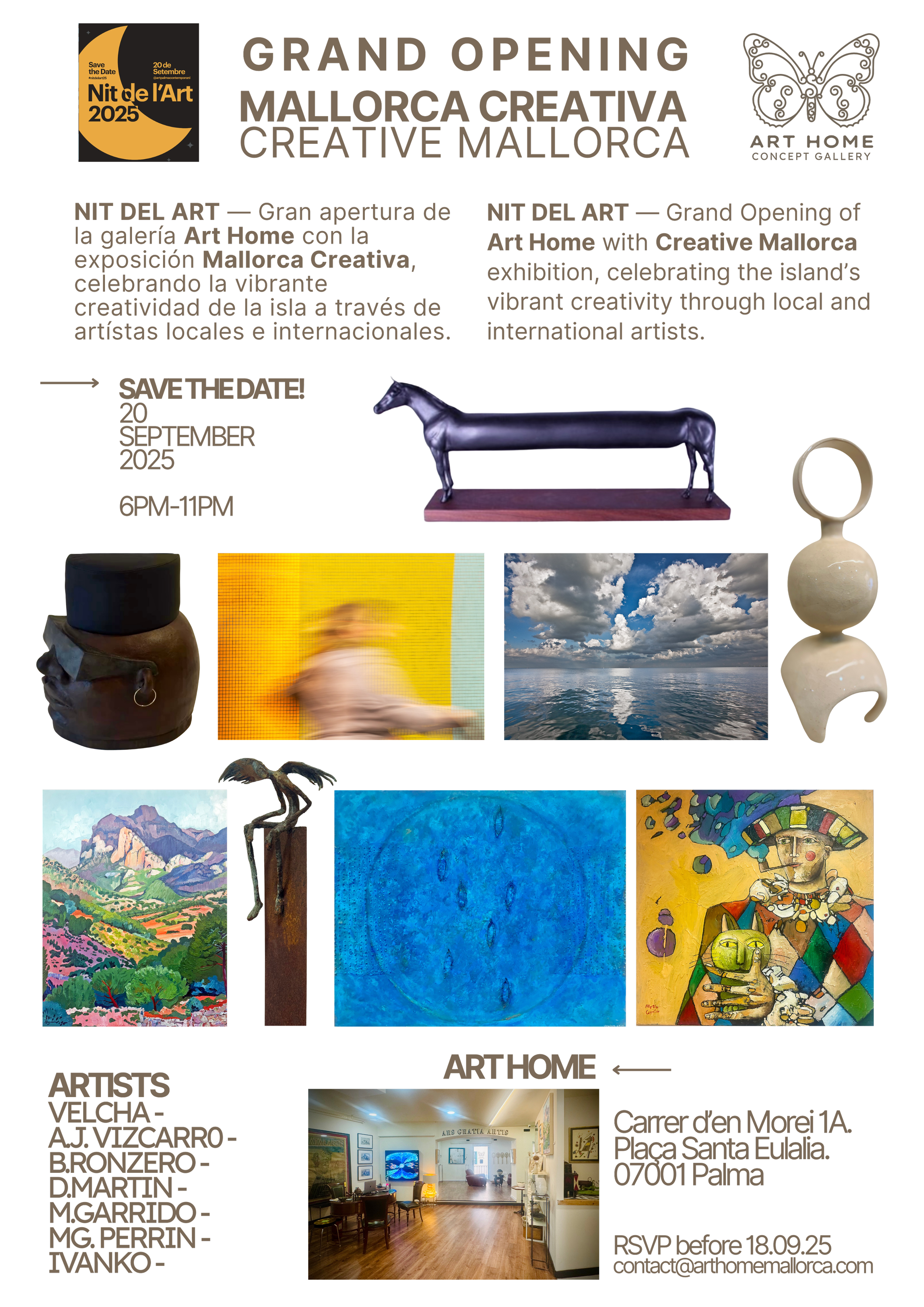 Within the vibrant atmosphere of Nit del Art, Art Home Mallorca opens its doors in Palma’s historic heart with Mallorca Creativa, a collective exhibition where local and international artists pay tribute to the island’s spirit and inspiration